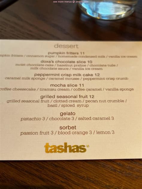 Menu of tashas, Constantia, Cape Town - Source www.zomato.com